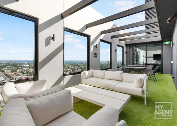 Oferecendo sauna e pátio, apartamento Elegant Stature Building Luxury Apartment está situado a 0.9 km de Torre Eureka. Fica a 5 minutos de carro de Recinto de Críquete de Melbourne e perto de Greek Orthodox Church of St. Eustathios.